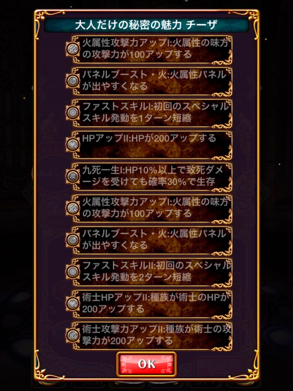 AS2:3チェインで火属性の味方の攻撃力をアップ、術士はさらにアップ(40%、術士は80%)