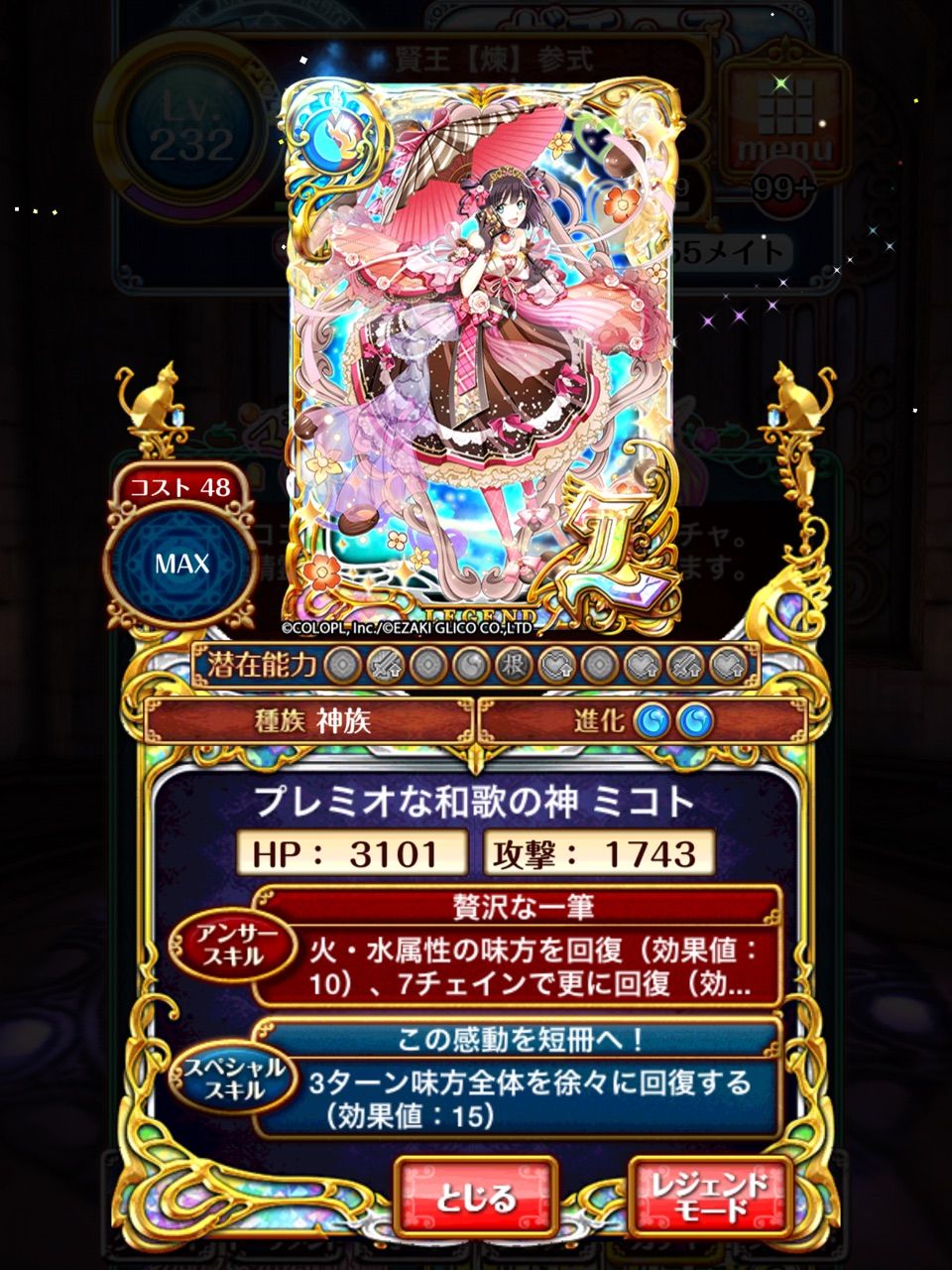 潜在には戦後回復を持ち、さらに神族であれば味方のHPを500も底上げ