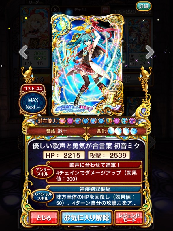 ちなみにミクに198のマナを振った場合はこの二つの条件を同時に満たすことが出来ます。