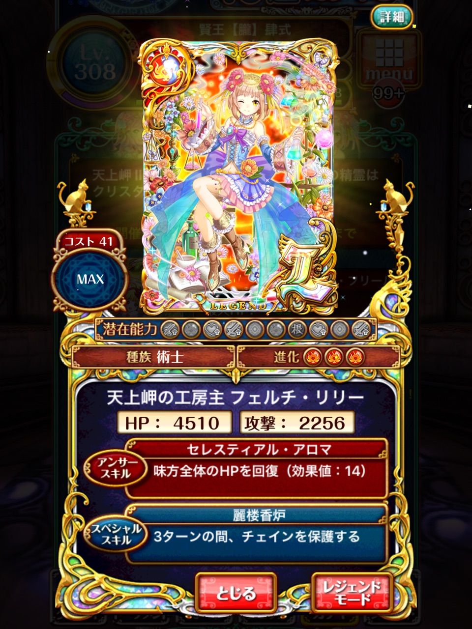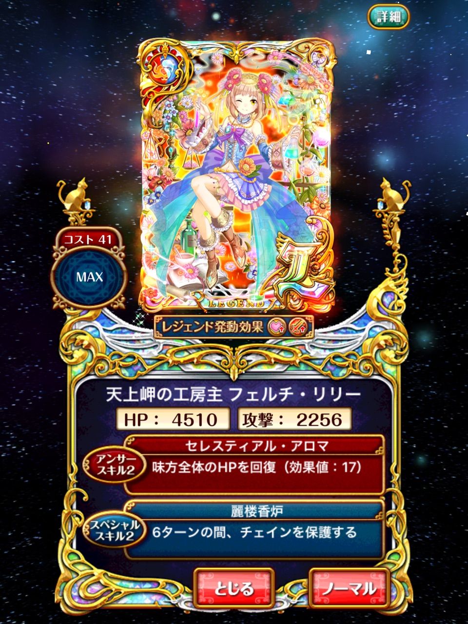 火属性のチェイン保護にはクリスマス版のルシエラ&アルドベリクがいますが、ルシ&アドの場合SS2でスキルが変わってしまうので、純粋なチェイン保護精霊としてはフェルチが初です。