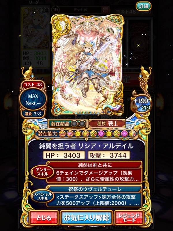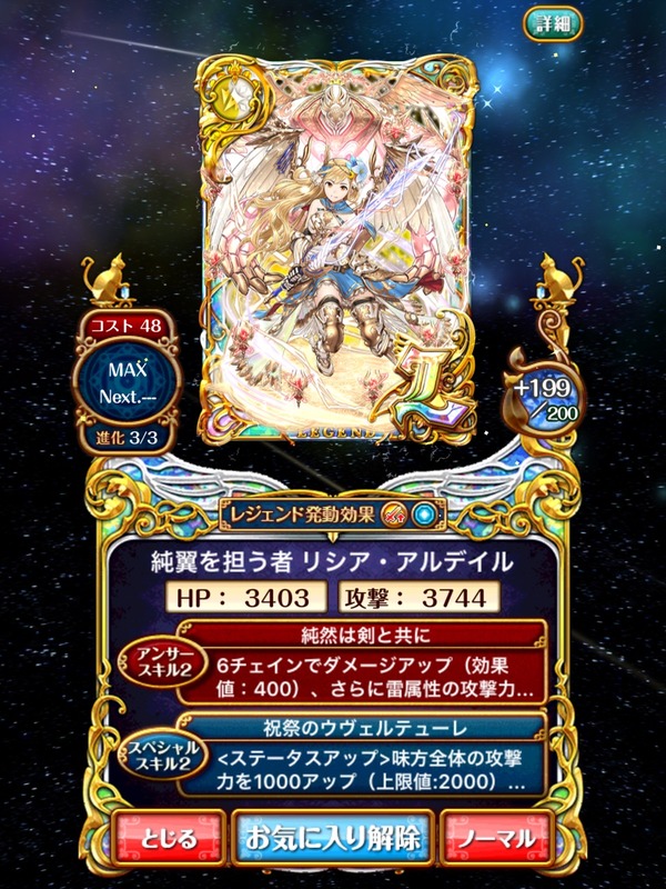 ASは6チェインのダメージアップ+複属性エンハンス。味方に雷・光属性の精霊がそろっていればかなりのダメージを出すことが可能。